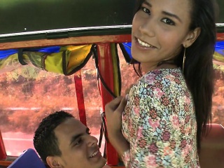 Exciting brunette sensually exposes her hot body and fucks a long dick