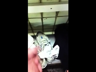 Risky jerk off in public shower
