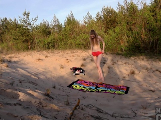 areana fox masturbating on a beach with a big dildo