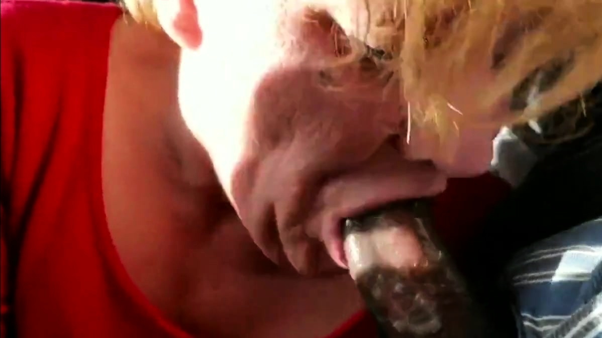 Old GILF gumming black dick and swallows