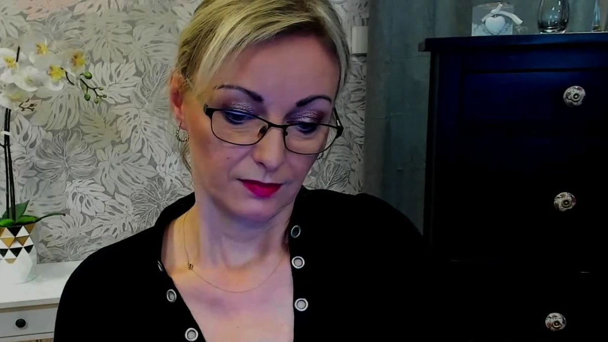Blonde MILF takes off bra on webcam