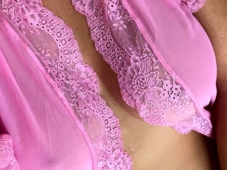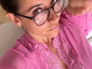 Amateur busty brunette masturbates and does hand job