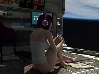 Cute japanese anime catgirl gets fucked on a space station