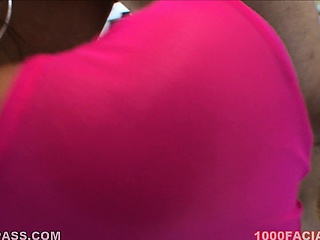 She chomps on his big rod, fingers her twat and gets a messy facial