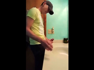 Big-Cock Latin Hunk Jerks Off in Bathroom