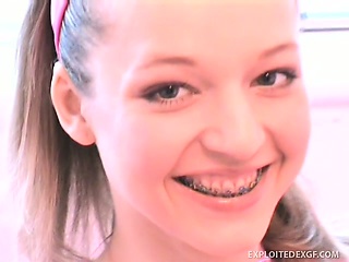 Adorable brunette teen Britney shows off her perky tits, sweet ass and her needy peach