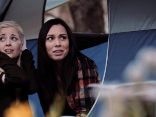 Horny ladies scissoring in the forest